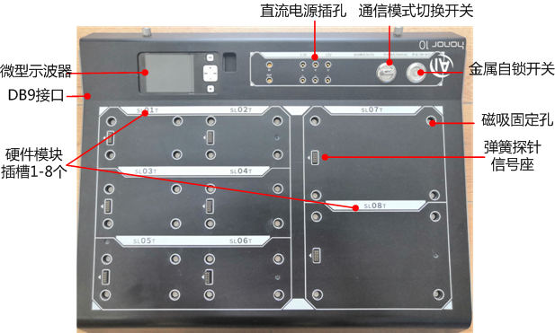 通用基礎(chǔ)平臺由平臺基座與垂直網(wǎng)板組成,符合人體工學(xué)設(shè)計(jì)。基座開模設(shè)計(jì),采用ABS材料,表面光滑,有質(zhì)感,有對應(yīng)絲印圖,美觀,大氣;基座具有DB9通信接口,3.3V/5V/12V電源插孔,通信選擇開關(guān)、總電源自鎖開關(guān);內(nèi)嵌微型示波器,可完成電路供電測試及工作過程關(guān)鍵點(diǎn)測試,能夠在電路原理學(xué)習(xí)基礎(chǔ)上完成實(shí)踐中的驗(yàn)證測試,達(dá)到理實(shí)一體效果;具有8個(gè)SLOT插槽,磁吸固定孔,彈簧頂針管腳,可與硬件模塊磁性吸合,頂針連接,完成供電、RS485、RS232等標(biāo)準(zhǔn)總線通信。硬件模塊任意組合,支持各種場景應(yīng)用,每個(gè)模塊都有通信地址和硬件電路測試點(diǎn),讓學(xué)生不僅懂得硬件電路原理,還可使用示波器測試硬件電路工作的瞬態(tài)過程。垂直網(wǎng)板是金屬網(wǎng)孔板,能磁吸或螺絲固定商用設(shè)備,用于用戶實(shí)驗(yàn)拓展。