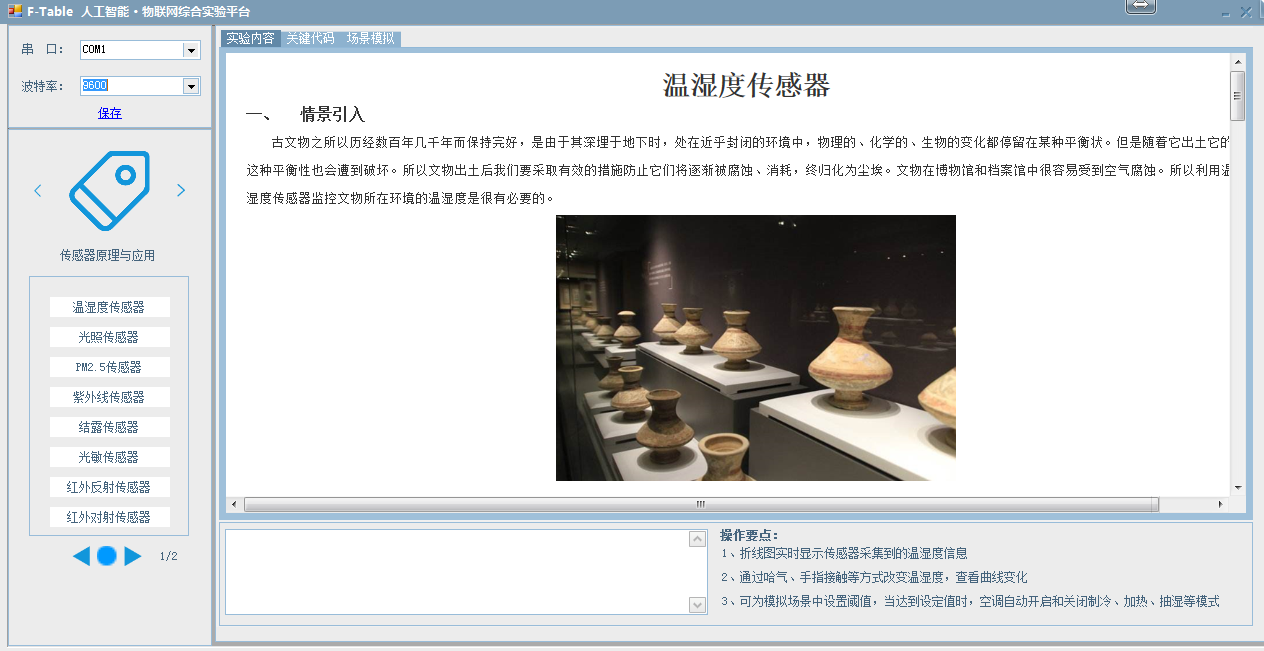 在C#軟件上有每一個(gè)教學(xué)實(shí)驗(yàn)資源,包含實(shí)驗(yàn)?zāi)康模瑢?shí)驗(yàn)原理,實(shí)驗(yàn)內(nèi)容,實(shí)驗(yàn)步驟,實(shí)驗(yàn)過程,實(shí)驗(yàn)現(xiàn)象以及對應(yīng)場景應(yīng)用,能夠讓學(xué)生不僅學(xué)習(xí)傳感器概念,原理,開發(fā),還能學(xué)以致用。