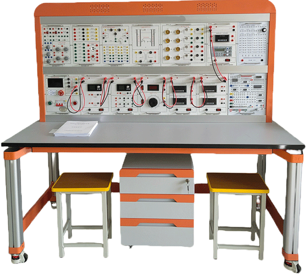 電工電子電拖綜合實(shí)驗(yàn)平臺(tái)由實(shí)驗(yàn)桌、實(shí)驗(yàn)臺(tái)架、存儲(chǔ)柜、實(shí)驗(yàn)掛箱組件、配件等組成。