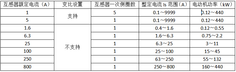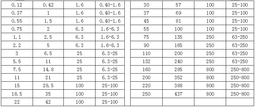 注:>250kW的低壓電動機,額定電流小于800A時均可選用800A等級的電動機保護器。