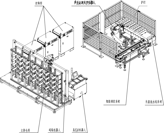 (1) 碼垛機立庫系統(tǒng),用于存儲物品托盤,并且按照要求碼垛機完成出庫和入庫;