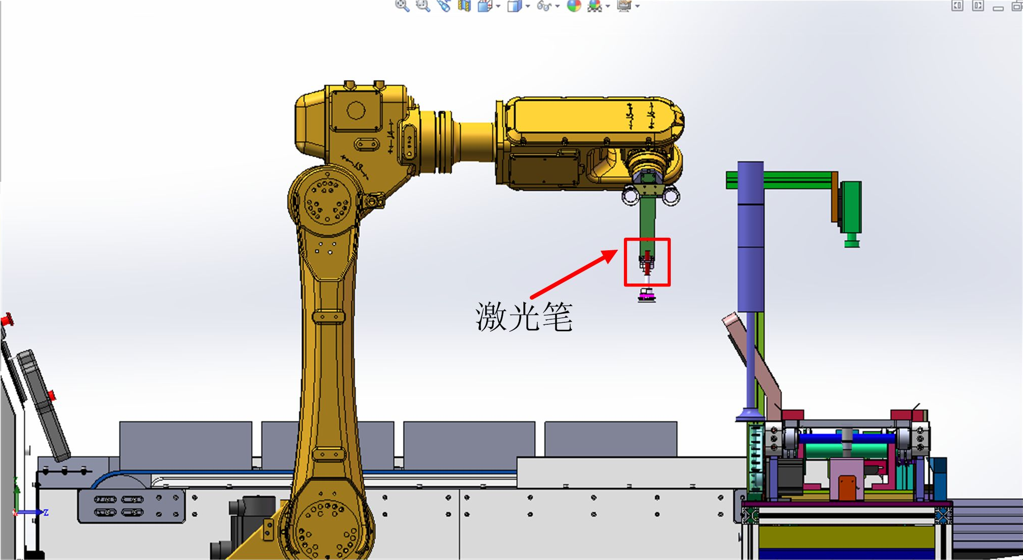 如圖 2-4 所示,在工業(yè)機器人末端夾具上安裝了一個激光筆,具體調(diào)節(jié)步驟如下: