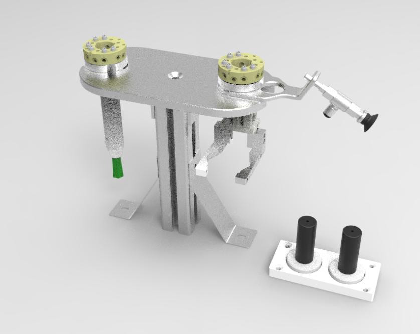 6、機(jī)器人工具模塊機(jī)器人末端工具是機(jī)器人的執(zhí)行單元,如圖 8 所示此模塊包括尖點(diǎn)輔助工具、筆工具、氣動(dòng)夾爪工具和氣動(dòng)吸盤(pán)工具。尖點(diǎn)輔助工具形狀為圓錐,具有TCP 校準(zhǔn)功能,同時(shí)可以模擬去毛刺、涂膠工具。筆工具、夾爪工具和吸盤(pán)工具都配備了機(jī)械快換工具,與機(jī)器人法蘭盤(pán)的機(jī)械快換工具配套使用,可實(shí)現(xiàn)工具的快速更換。筆工具內(nèi)部設(shè)置有緩沖裝置,可以有效減少學(xué)生初步學(xué)習(xí)機(jī)器人操作時(shí),由于不熟練導(dǎo)致剛性碰撞產(chǎn)生對(duì)工具的損壞。筆工具可以完成軌跡、寫(xiě)字和繪畫(huà)等實(shí)驗(yàn)內(nèi)容,彩筆可快速更換。夾爪工具和吸盤(pán)工具采用國(guó)際知名品牌, 用于物料的抓取和吸附。