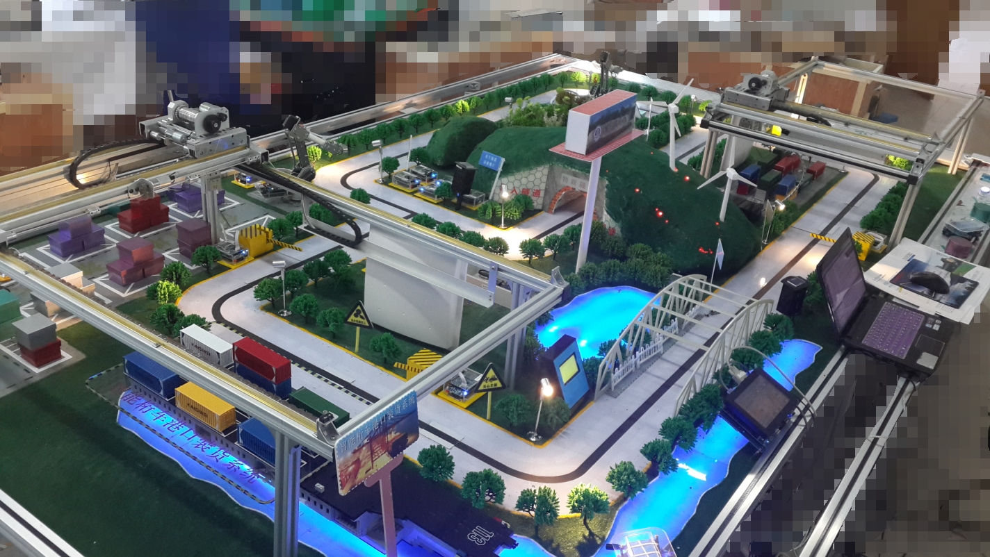 5、智能車輛離開倉庫,到達港口卸貨區(qū),由機器臂裝卸貨子系統(tǒng)完成卸貨任務(wù),并將貨物放入指定位置。