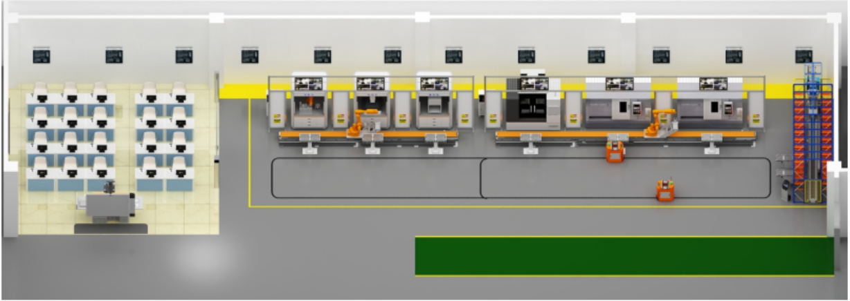 數(shù)字化協(xié)同制造與設(shè)計中心、數(shù)控機(jī)床加工制造單元及其自動化改造、自動化清洗單元、,自動化檢測單元、自動化裝配單元、自動化立體倉儲單元、多軸移動工業(yè)機(jī)器人上下料單元、AGV運(yùn)載單元、監(jiān)控單元、系統(tǒng)中央控制單元