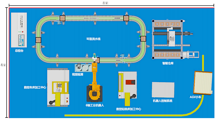 MES上位機的監(jiān)控演示、柔性化加工系統(tǒng)演示、控制演示、機電控管一體化技術演示、自動傳輸系統(tǒng)演示、AGV搬運演示、機器人編程使用、產(chǎn)品自動倉儲系統(tǒng)演示等等。