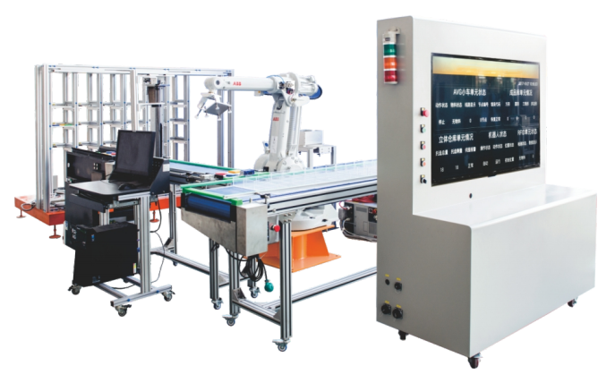 LGY-ZN021A型工業(yè)機(jī)器人智能傳輸分揀控制實(shí)訓(xùn)系統(tǒng)由工業(yè)機(jī)器人作為主體控制對(duì)象,能滿足模擬生產(chǎn)過(guò)程中的上料、AGV傳輸、圖像識(shí)別、分揀、入垛等環(huán)節(jié),裝置中包括工業(yè)機(jī)器人、PLC控制系統(tǒng)、AGV小車、皮帶傳輸環(huán)節(jié)、視覺檢測(cè)系統(tǒng)、RFID系統(tǒng)、分揀裝置、原材料立體倉(cāng)儲(chǔ)等單元,同時(shí)設(shè)備加入電子看板系統(tǒng),用來(lái)顯示生產(chǎn)環(huán)節(jié)。