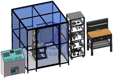 該裝備采用落地式的安裝形式,保證設(shè)備的穩(wěn)定可靠,同時采用多道防護(hù)裝置,包含了有機(jī)玻璃防護(hù)網(wǎng)、安全門(安全鎖)系統(tǒng)、安全光幕等硬件保護(hù)。
