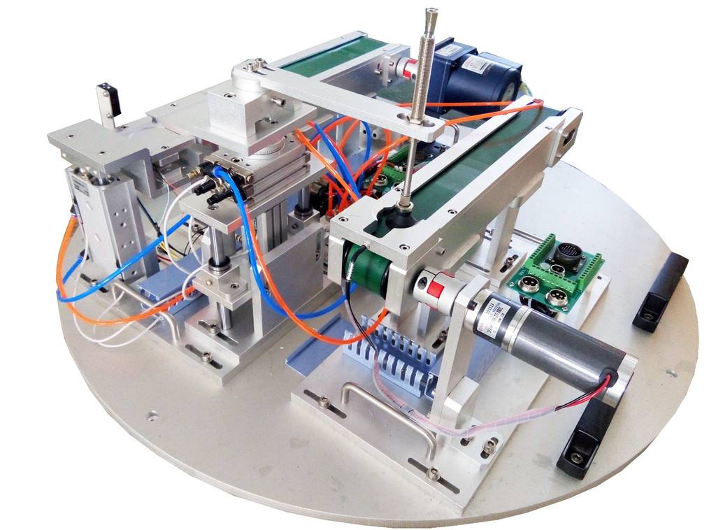 1. 物料送揀典型任務(wù)模型:該任務(wù)模擬多種功能, 有開發(fā)接口,開發(fā)接口由≤1.2mm鋼板加工,面板有特殊工藝而成,通過(guò)接口模型連接,以開放模型接口,方便實(shí)訓(xùn)教學(xué)。