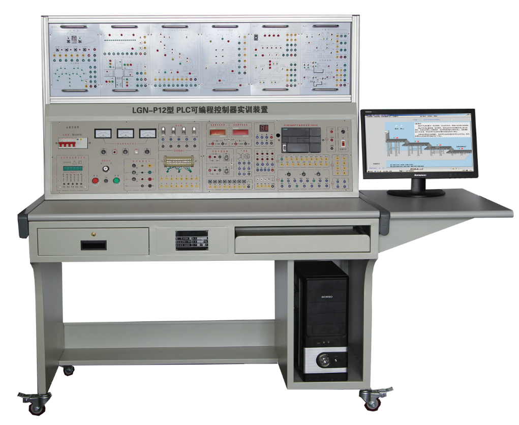 PLC可編程控制器實訓(xùn)裝置由控制屏、實訓(xùn)桌、主機實訓(xùn)組件、實訓(xùn)模塊、三相鼠籠異步電機、教學(xué)資源庫等組成。