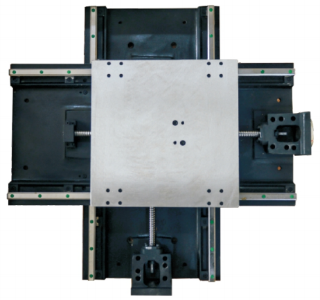 十字滑臺實(shí)訓(xùn)設(shè)備主要是為解決數(shù)控機(jī)床機(jī)械拆裝項(xiàng)目的實(shí)訓(xùn)難而特別設(shè)計(jì)的,該十字滑臺是提煉了真實(shí)機(jī)床在拆裝過程中的核心技能,即學(xué)生主要是拆裝傳動部件,例如滾珠絲桿、直線導(dǎo)軌、聯(lián)軸器、伺服電機(jī)等,該設(shè)備是把這些部件集成到一臺十字滑臺上進(jìn)行練習(xí),這樣既節(jié)約了成本,又訓(xùn)練了核心技能,為了保證精度與剛性,十字滑臺模塊整體為高剛性的鑄鐵結(jié)構(gòu),采用樹脂砂造型并經(jīng)過時效處理,確保長期使用的精度,導(dǎo)軌采用H級直線導(dǎo)軌,直線導(dǎo)軌安裝采用與真實(shí)機(jī)床安裝相同的壓塊結(jié)構(gòu)進(jìn)行直線度的調(diào)節(jié),并裝有接近式傳感器,可以進(jìn)行回零、硬限位的調(diào)試以及精度測試。結(jié)構(gòu)上采用模塊化,下裝有滑輪,可以自由移動,可以完成機(jī)械傳動部件中的絲桿、直線導(dǎo)軌、絲桿支架的拆裝實(shí)訓(xùn)及導(dǎo)軌平行度、直線度、雙軸垂直度等精密檢測技術(shù)的實(shí)訓(xùn),和各實(shí)驗(yàn)臺配合,完成機(jī)電聯(lián)調(diào)與數(shù)控機(jī)床機(jī)械裝配核心技能的訓(xùn)練。X軸上裝有光柵尺,裝有與光柵尺對應(yīng)的數(shù)顯表,數(shù)顯表能夠顯示滑臺移動的實(shí)際長度。