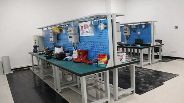 設(shè)備是由防爆柜、防靜電操作臺、防爆箱、防爆電阻箱、隔爆型防爆燈、增安型防爆燈、本安型防爆燈、防爆接線盒、防爆電動機、接地桶、密封圈、防火泥、防爆撓性管、封堵件、防爆電阻箱被測電流回路(防爆白熾燈,用硬導(dǎo)線連接)、防爆儀表(萬用表/防爆型、萬用表/普通型指針式、兆歐表500V/防爆型、兆歐表1000V/防爆型、兆歐表500V/普通型、兆歐表1000V/普通型、鉗形電表/防爆型、鉗形電表/普通型數(shù)字式、接地電阻測試儀/防爆型、接地電阻測試儀/普通型數(shù)字式)、防毒面具、防護眼鏡、安全帶、絕緣鞋、安全帽、攜帶式接地線、低壓驗電筆等組件構(gòu)成。