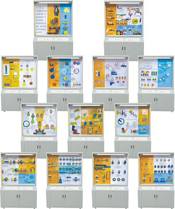 CLG-106型《機械基礎設計》示教陳列柜是根據教育部高職高專規(guī)劃教材設計的電化教學設備。本陳列柜共分十三個柜和一個電腦控制臺,并配有一臺功率放大器,VCD機和激光片,聲控同步演示,采用單獨驅動由電子設備控制演示,可由VCD控制順序自動運行講解;又能根據教材,教學需要而遙控任意選擇進行單獨演示。模型材料采用進口有機板和硬聚氯;板面附有必要的圖表和文字說明,演示形象逼真,運行可靠,制作工藝美觀,使用本陳列柜可提高教學效果,節(jié)約學時,是一套現代機化械課程教學應用實驗設備。