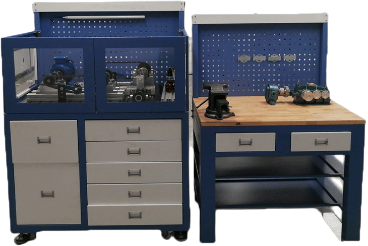5.設(shè)有存儲柜,用于機械傳動零部件、工量具、資料等的儲存;底部采用工業(yè)腳輪,單輪承重不小于500kg。