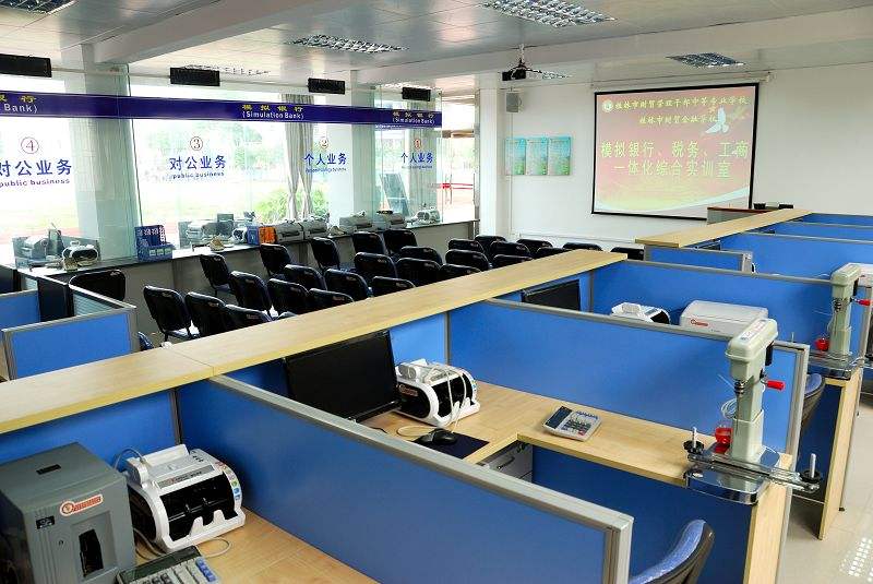 在以往的職業(yè)教育過程中,一般分為課堂教學(xué)和畢業(yè)前的頂崗實習(xí)兩個階段,忽略了專業(yè)理論知識與專業(yè)技能的綜合運用、各種專業(yè)專項技能的綜合運用,以及專業(yè)核心能力與關(guān)鍵能力的綜合運用,導(dǎo)致課堂教學(xué)和頂崗實習(xí)相脫節(jié),學(xué)生不能迅速適應(yīng)實習(xí)崗位,直接影響到學(xué)生就業(yè)。經(jīng)過對職業(yè)教育實踐教學(xué)體系的研究與實踐,我們組建了模擬銀行綜合實訓(xùn)室,較好解決了上述問題。