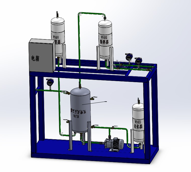 一、裝置特色 整套裝置由鋼制安裝框架、反應器、換熱器、緩沖罐、仿真儀表、就地計算機操作臺、就地智能儀表控制上位監(jiān)控軟件、外置配套設備等組成,工藝路線簡...