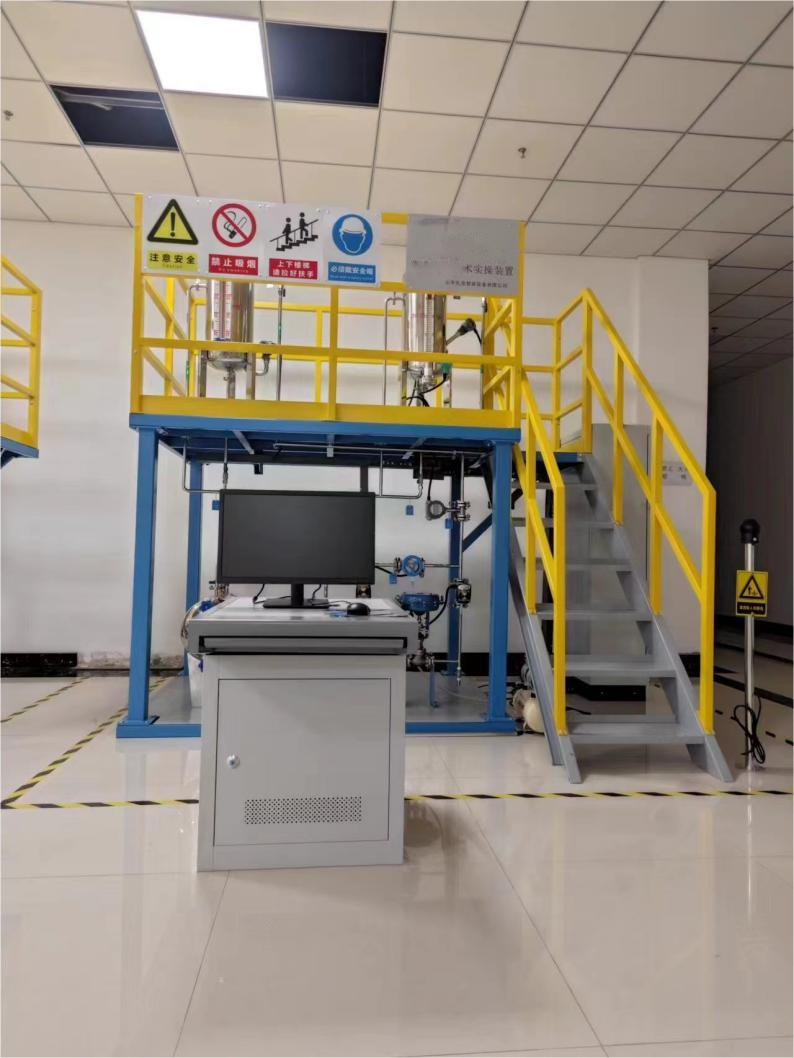 一、裝置特色 整套裝置由鋼制安裝框架、苯計量槽、硝化釜、冷凝器、仿真儀表、就地計算機操作臺、、就地智能儀表控制上位監(jiān)控軟件、外置配套設備等組成,工藝路...