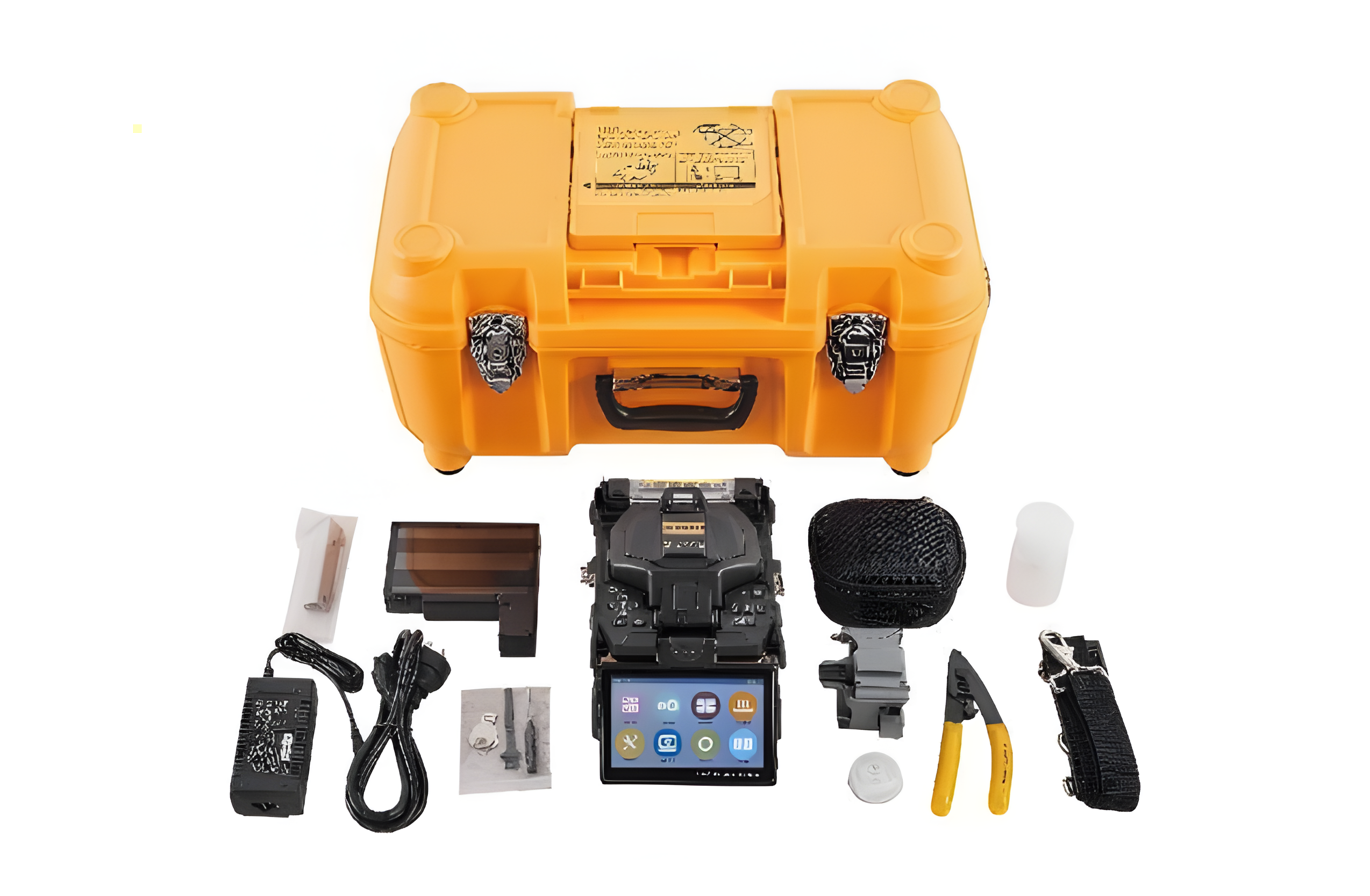 3、配置:硬攜帶箱1個,熔接機主機1個,光纖切割刀1把,電池1塊,適配器1個,備用電極1對,電源線1條,肩帶1條,酒精泵1個,米勒鉗1把。
