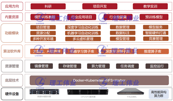 人工智能底層支撐平臺(tái)為一套人工智能底層資源管理系統(tǒng),面向深度學(xué)習(xí)計(jì)算集群,需具備科研教學(xué)一體化,容器化架構(gòu)。支持CPU/GPU異構(gòu)計(jì)算分布式集群,科研數(shù)據(jù)管理服務(wù),代碼和項(xiàng)目文檔管理服務(wù),鏡像管理以及可視化展示等特點(diǎn)。可以支持多種深度學(xué)習(xí)框架,能夠快速部署深度學(xué)習(xí)開發(fā)、訓(xùn)練、預(yù)測環(huán)境,全面管理深度學(xué)習(xí)任務(wù),為深度學(xué)習(xí)用戶提供高效易用的平臺(tái)。對(duì)計(jì)算集群的CPU及GPU資源進(jìn)行統(tǒng)一的管理、調(diào)度及監(jiān)控,有效的提高計(jì)算資源的利用率和生產(chǎn)率為深度學(xué)習(xí)用戶提供高效易用的平臺(tái)。